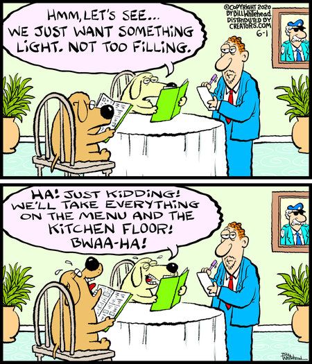 Dogs at dinner order “something light”—but who are they kidding? They want the entire menu (and the floor). This one’s for every pet parent who’s ever tried to eat in peace.