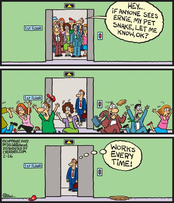 Want some alone time? Announce your pet snake is missing. Instant results! This comic is a perfect elevator pitch for awkward situations.