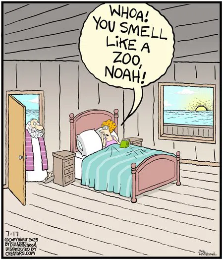 Even after 40 days and 40 nights, there’s no escape from a spouse’s honest critique. Noah’s post-flood homecoming is a comic take on ancient history—and the eternal struggle of post-trip laundry.