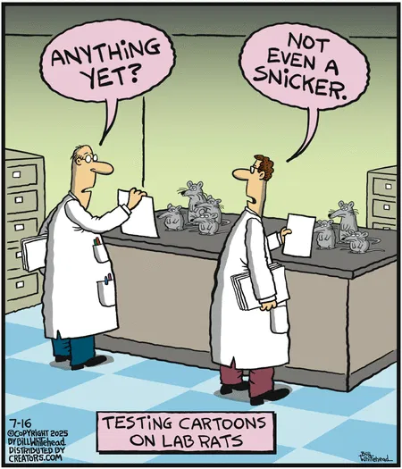 Scientists try to measure comic success, but their audience (lab rats) aren’t even giving them a snicker. A clever meta-joke for anyone who’s ever bombed at an open mic or tried a dad joke that fell flat.