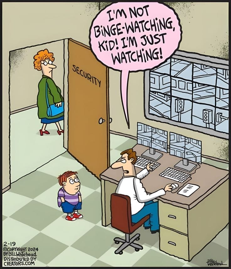 A guard insists he’s “just watching,” not binge-watching. The monitors say otherwise.