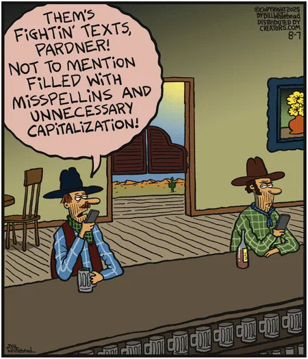 Cowboys feud over poorly written texts with misspellings and random capitalization. The real Wild West.