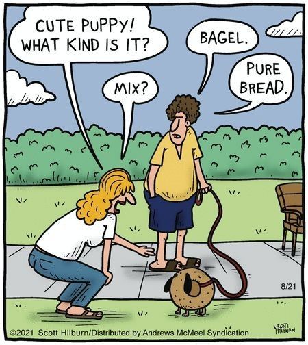 Dog breeds just got a carb upgrade with a “pure bread” bagel pup. The pun game is strong.