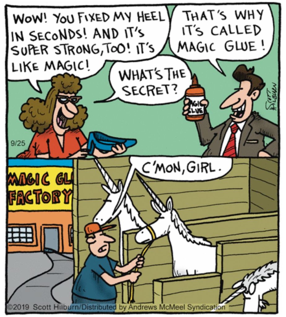 A shoe repair turns magical—because the factory’s powered by actual unicorns. Absurd perfection.