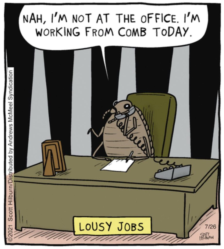 A lice-inspired work-from-home joke that scratches all the right comedic itches.