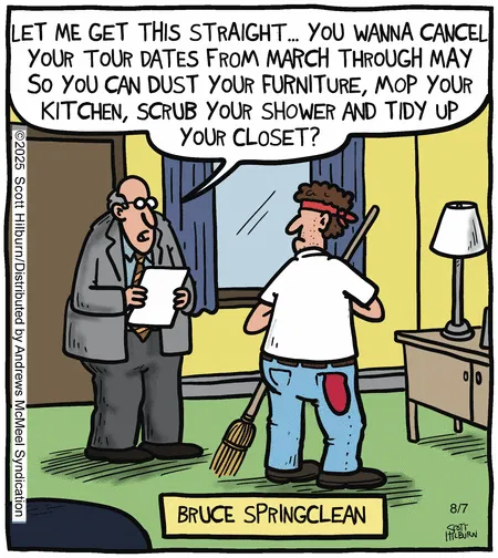 A rock legend cancels tour dates for some hardcore housekeeping. That’s domestic dedication.