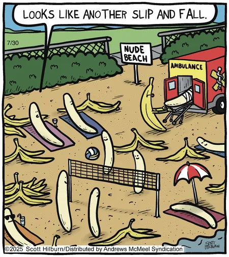 Bananas at a nude beach? It’s a pun-filled paradise until someone slips—literally—on the peel.