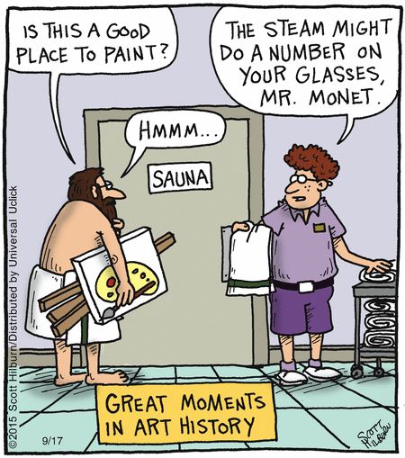 Claude Monet’s quest for the perfect setting lands him in a sauna, only to be warned about his foggy glasses. Art history meets spa day, and the punchline leaves you sweating (with laughter).