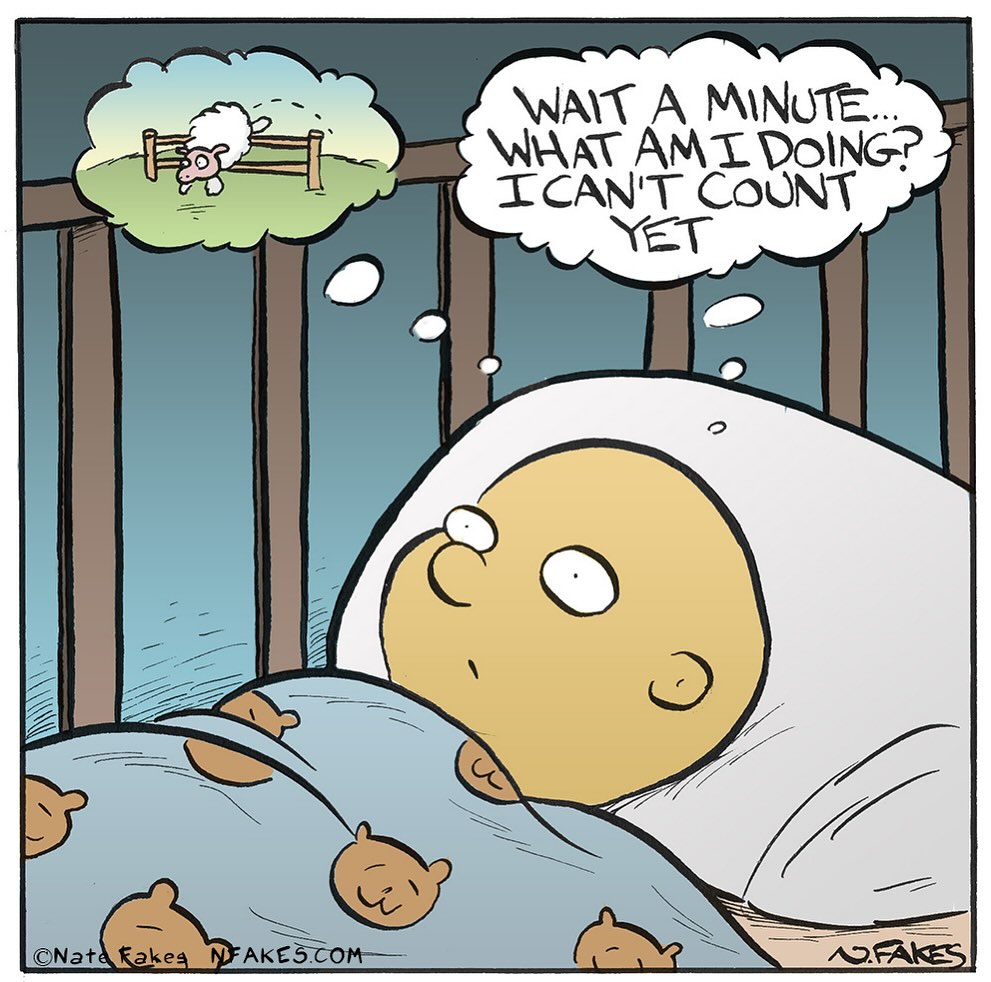 A baby tries counting sheep—then realizes they can’t count. This playful, clever strip turns bedtime troubles into laugh-out-loud viral comic strip gold.