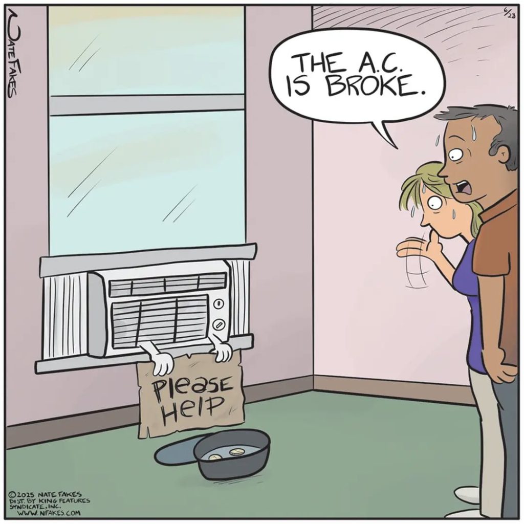 It’s summer, the A.C. is broke, and even the air conditioner is begging for spare change. A viral comic strip that will have every sweaty reader nodding in solidarity (and hitting share).