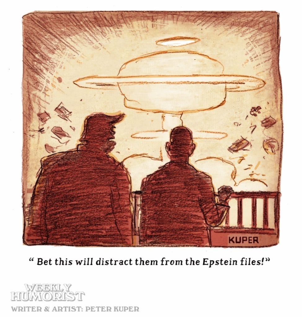 The Weekly Humorist stable of artists is a rotating powerhouse of comedic talent — names like Vaughan Tomlinson, Kyle Bravo, Katherine Bettis, Arun Durvasula, Sarah Morrissette, Kit Lively, David DeGrand, Isaiah Legette, Nathan Cooper, Thomas Wykes, David Ostow, and Peter Kuper bring unique voices to the mix.
