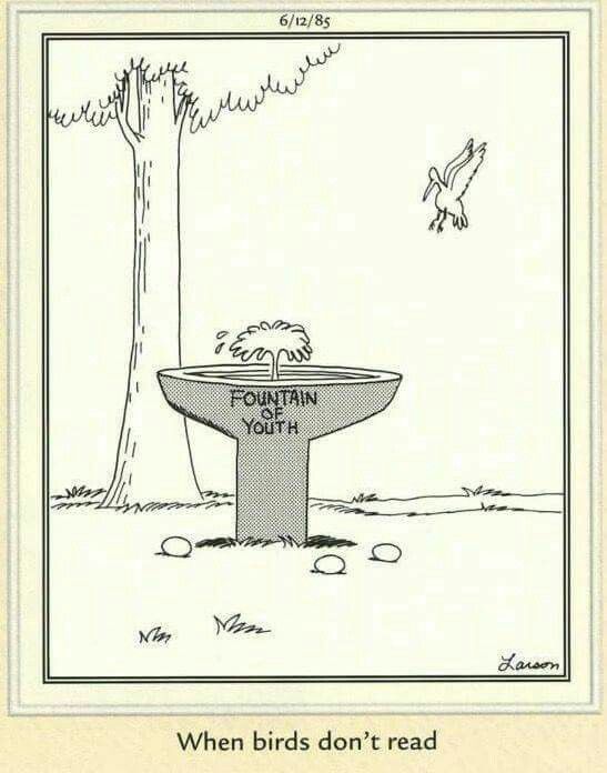 Sometimes the best jokes are the ones you only get on the second look. “When birds don’t read” is the sort of dry punchline that rewards the observant, with eggs in the birdbath and an empty nest above. Poignant and punny, all at once.