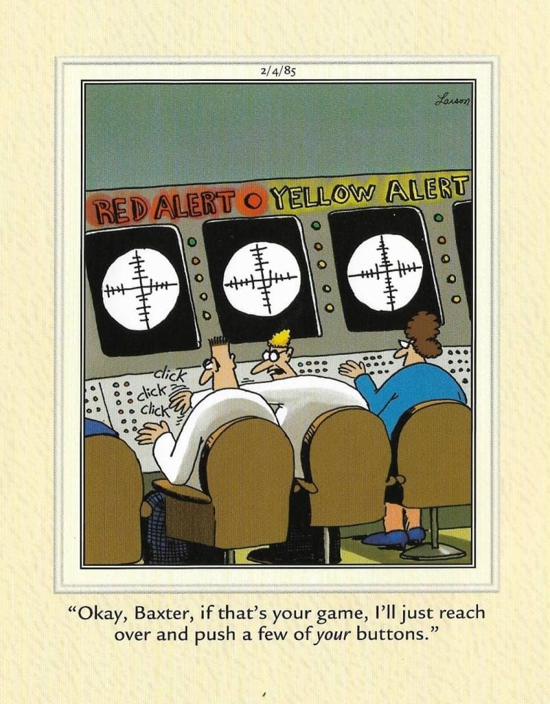 Imagine a cavalry charge—majestic horses, fluttering flags, and… an accordion? This comic kicks off our list by taking military heroism and throwing it out the window, all because Simmons can’t get his bugle fixed. The punchline lands with that perfect Far Side timing, poking fun at the idea of preparedness—and musical talent. If you’ve ever shown up to a serious event with the wrong “equipment,” you’ll feel Simmons’ pain.