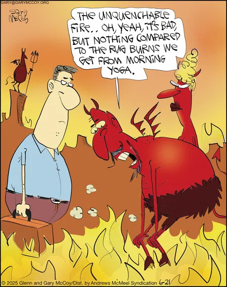 Even in the depths of the underworld, morning yoga is tougher than eternal flames! This strip takes workplace burnout to a whole new, hellish (and hilarious) level.