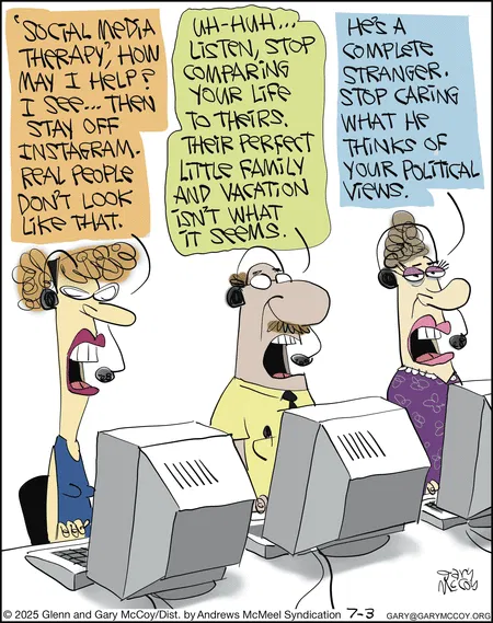 All cartoons featured in this article are the amazing creations of Glenn and Gary McCoy, true masters of the witty cartoon. Their expressive characters and razor-sharp humor set the gold standard in funny comics. Check out more on their official website, Facebook, and Instagram.