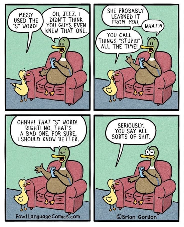 A misunderstanding about the “S” word leads to a classic parenting moment: thinking your kid said a curse word, only to find out it’s “stupid.” Then you realize you’ve probably said the real “S” word multiple times today. Oops.