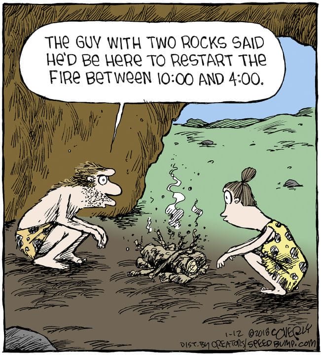 “Looks like Sits-Near-Fire butt-signaled again.” Primitive communication has never looked so awkward. Coverly takes us way back to the Stone Age with tech-age humor. Smoke signals meet autocorrect.