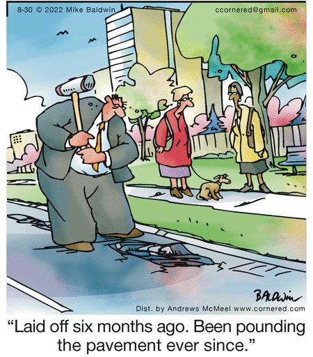 Mike Baldwin has long mastered the art of one-liner gold and absurd observational humor. As the creator of the long-running Cornered comic series, his cartoons feature single-panel snapshots of life—with a twisted, witty spin. From courtroom quips to workplace nonsense and awkward social exchanges, Baldwin’s humor is perfectly positioned somewhere between “I’ve been there” and “Wait, what just happened?
