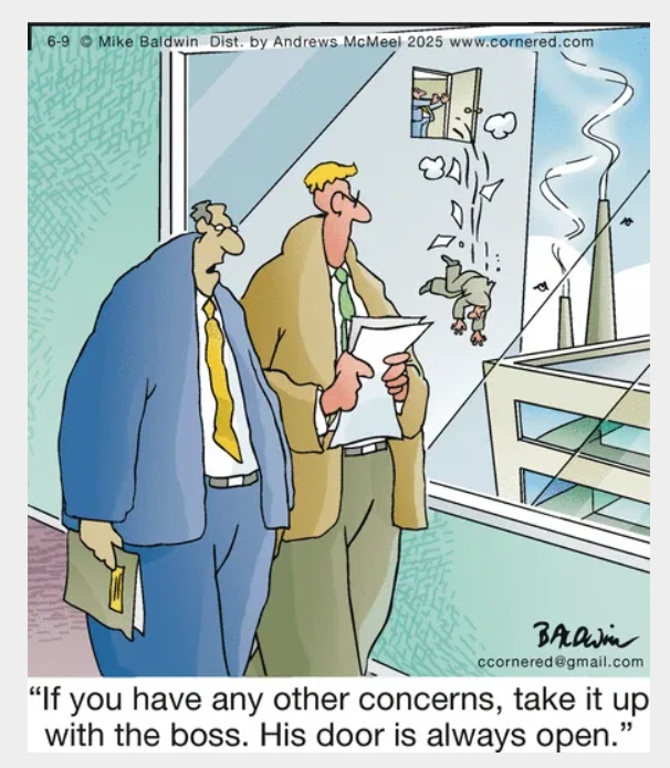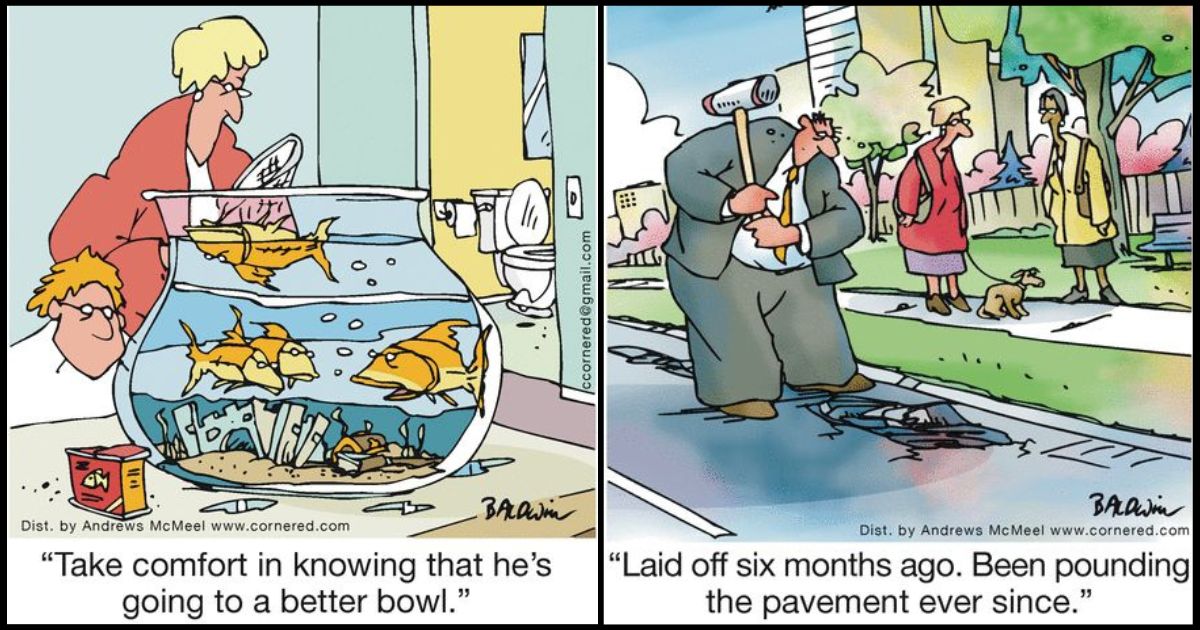 Mike Baldwin continues to prove that wit doesn’t need a full page—it just needs the right setup and one killer punchline. His cartoons balance sarcasm, realism, and the occasional absurdity we all experience in daily life. From awkward encounters to wordplay wizardry, Baldwin’s humor is both classic and refreshingly sharp.