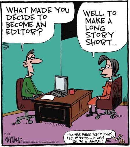 An editor says she made “a long story short.” Too many typos later—she’s out. Wordplay so sharp it cuts.