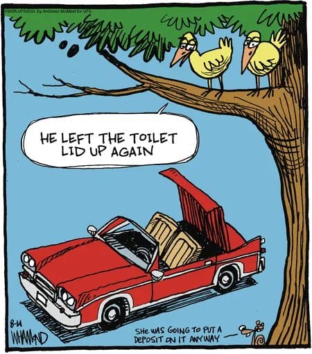 These comics are the work of Dan Piraro’s fellow humorist, Mark Parisi’s “Off the Mark” and Dave Whamond’s “Reality Check” (depending on the panel style you’ve seen). Dave Whamond, for instance, is a Canadian cartoonist whose award-winning series Reality Check has been syndicated worldwide. His style blends everyday scenarios with absurd exaggeration, creating punchlines that are both sharp and accessible. He’s received multiple honors from the National Cartoonists Society and has illustrated over 25 children’s books. His trademark? Twisting ordinary life into surreal, witty everyday humor that readers can’t help but share.