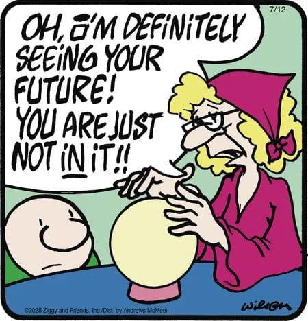 A fortune teller delivers the harshest psychic reading ever: Ziggy’s future is fine, but he’s not in it. Savage, snarky, and so, so funny—this strip shows that sometimes, the best punchlines come from unexpected places (and people who don’t even believe in crystal balls).