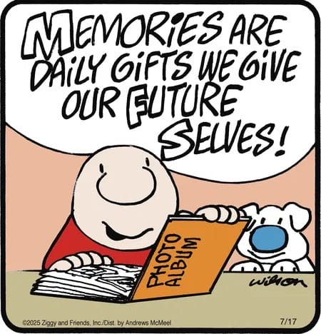 A rare sentimental gem, this comic sees Ziggy cherishing old photos with his loyal pooch. The message? Every day’s memory is a gift to your future self. Short, sweet, and surprisingly deep. Keep this one handy for your next motivational moment.